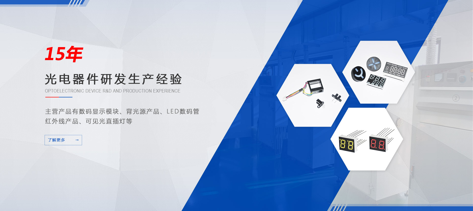 主营产品有数码显示模块、背光源产品、LED数码管、红外线产品、可见光直插灯等,主要用于日常生活电器:冰箱、空调、洗衣机;交通工具:汽车、动车、飞机;工业设备、仪器仪表等广范领域。